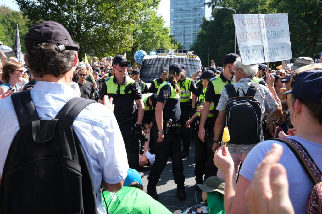 XR en CCA blokkeren kruispunt voor Nederlands hoofdkantoor TotalEnergies in Den Haag