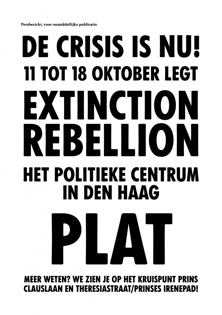 Vanaf maandag 11 oktober legt Extinction Rebellion in Den Haag het politieke centrum van Nederland plat