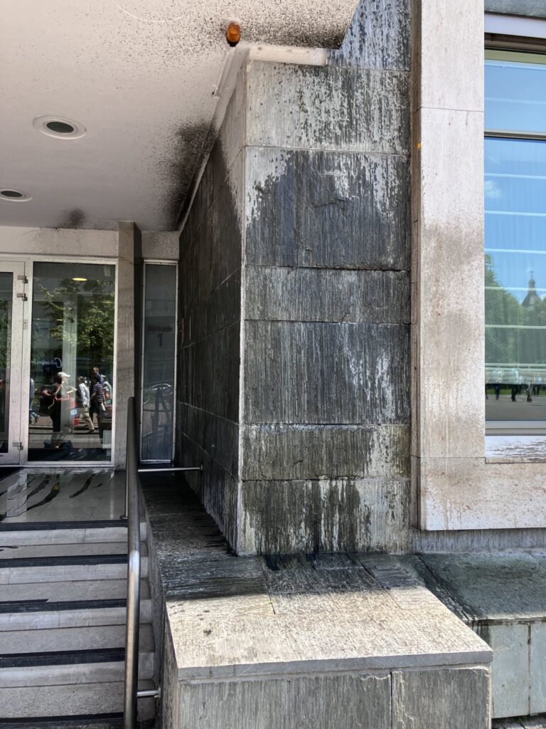 Extinction Rebellion en Scientist Rebellion geven het hoofdkantoor van Steenkolen Handels Vereniging (SHV) een make-over, uit protest tegen geplande gaswinning in de Noordzee